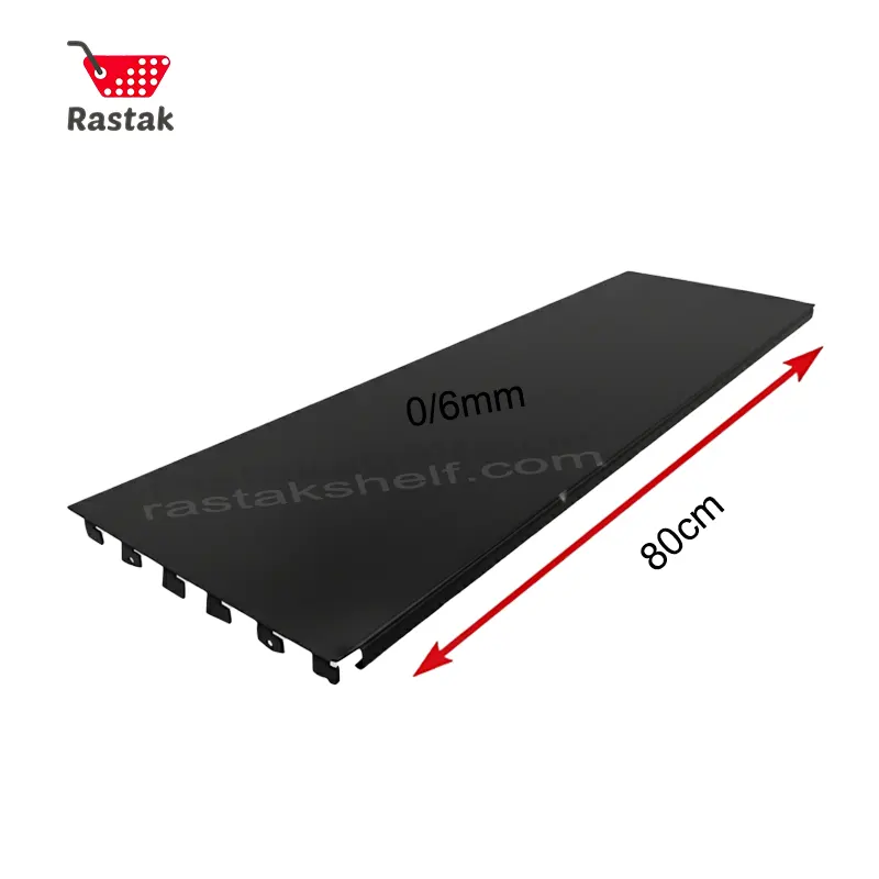 این صفحه پشت 80 سانتی قفسه فروشگاهی با برش دقیق صنعتی و لبهزنی منظم ساخته شده تا هنگام نصب، کاملاً فیکس و بدون لرزش روی پایهها قرار گیرد. ضخامت استاندارد ۰.۶ میلیمتر، تعادلی عالی میان وزن سبک و مقاومت بالا ایجاد میکند.